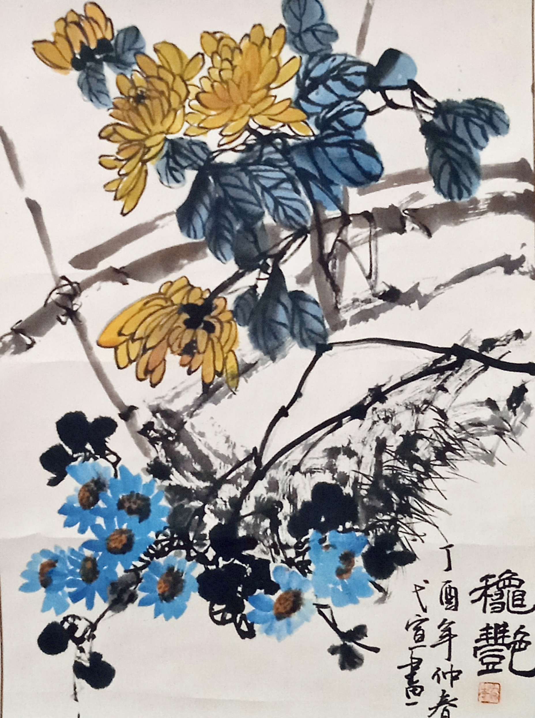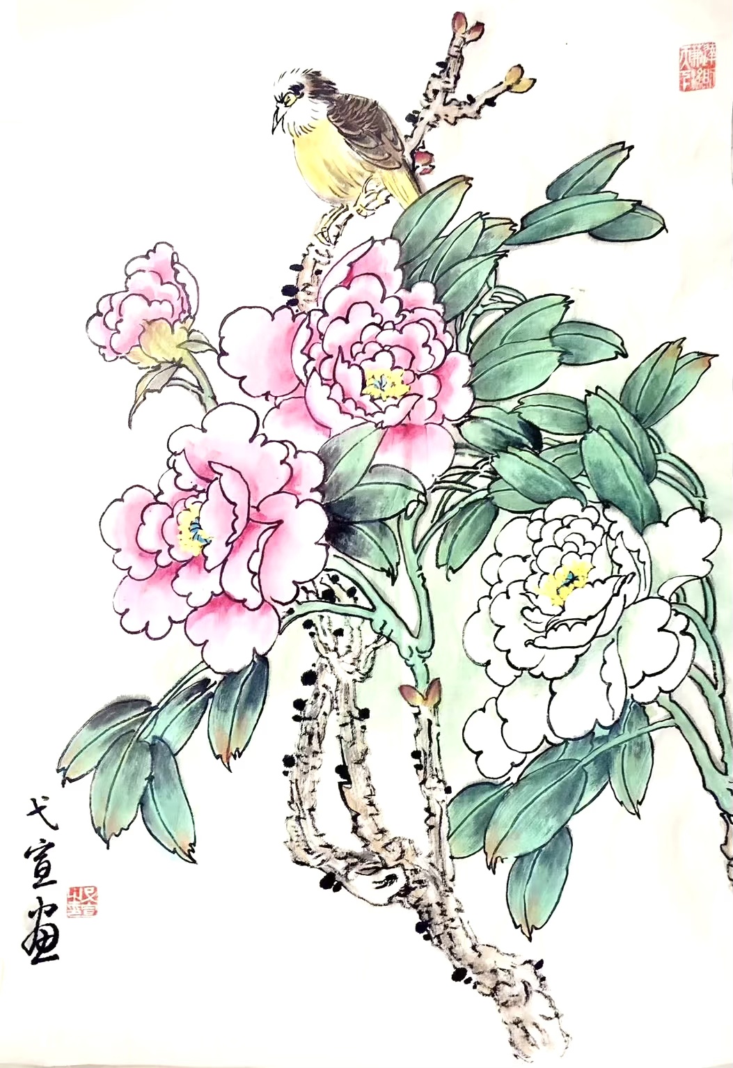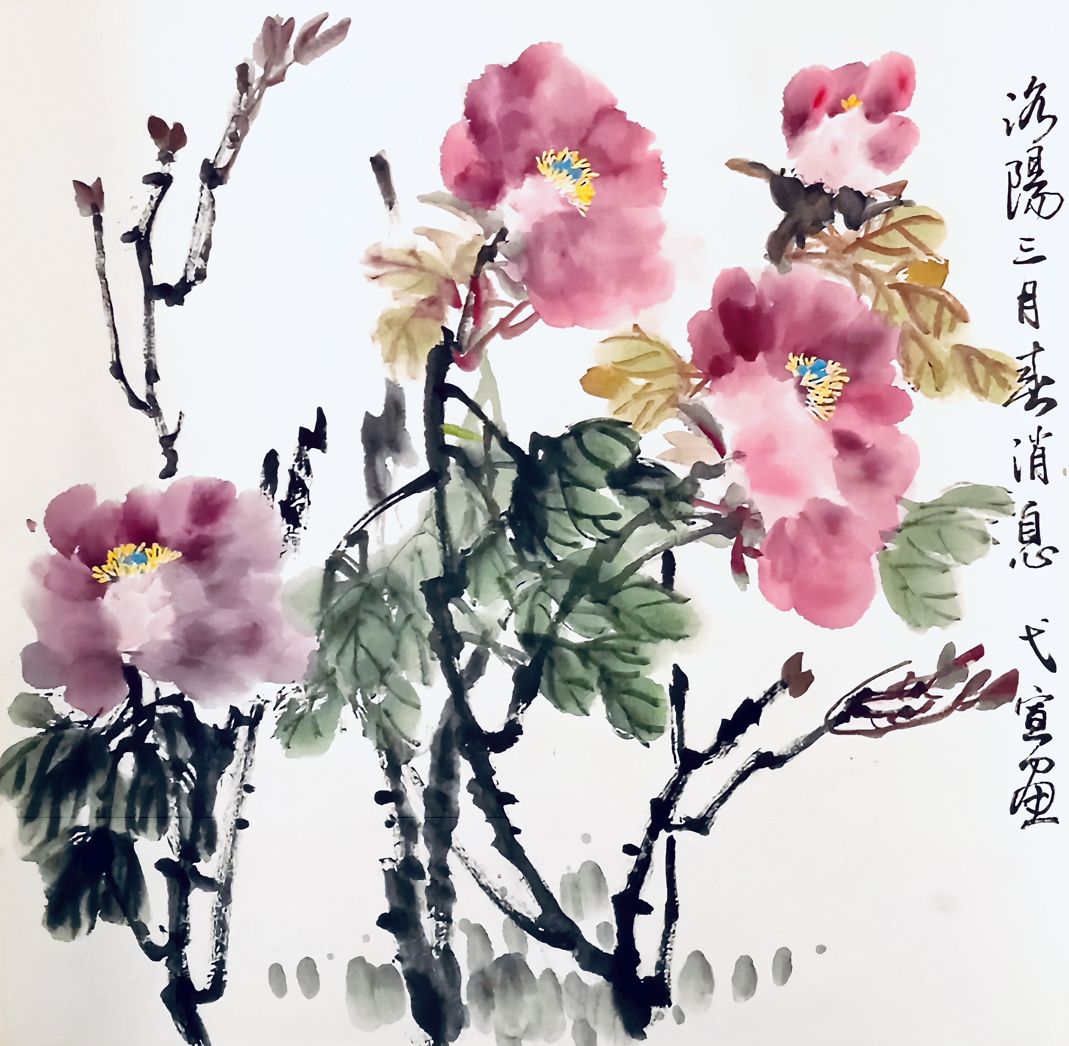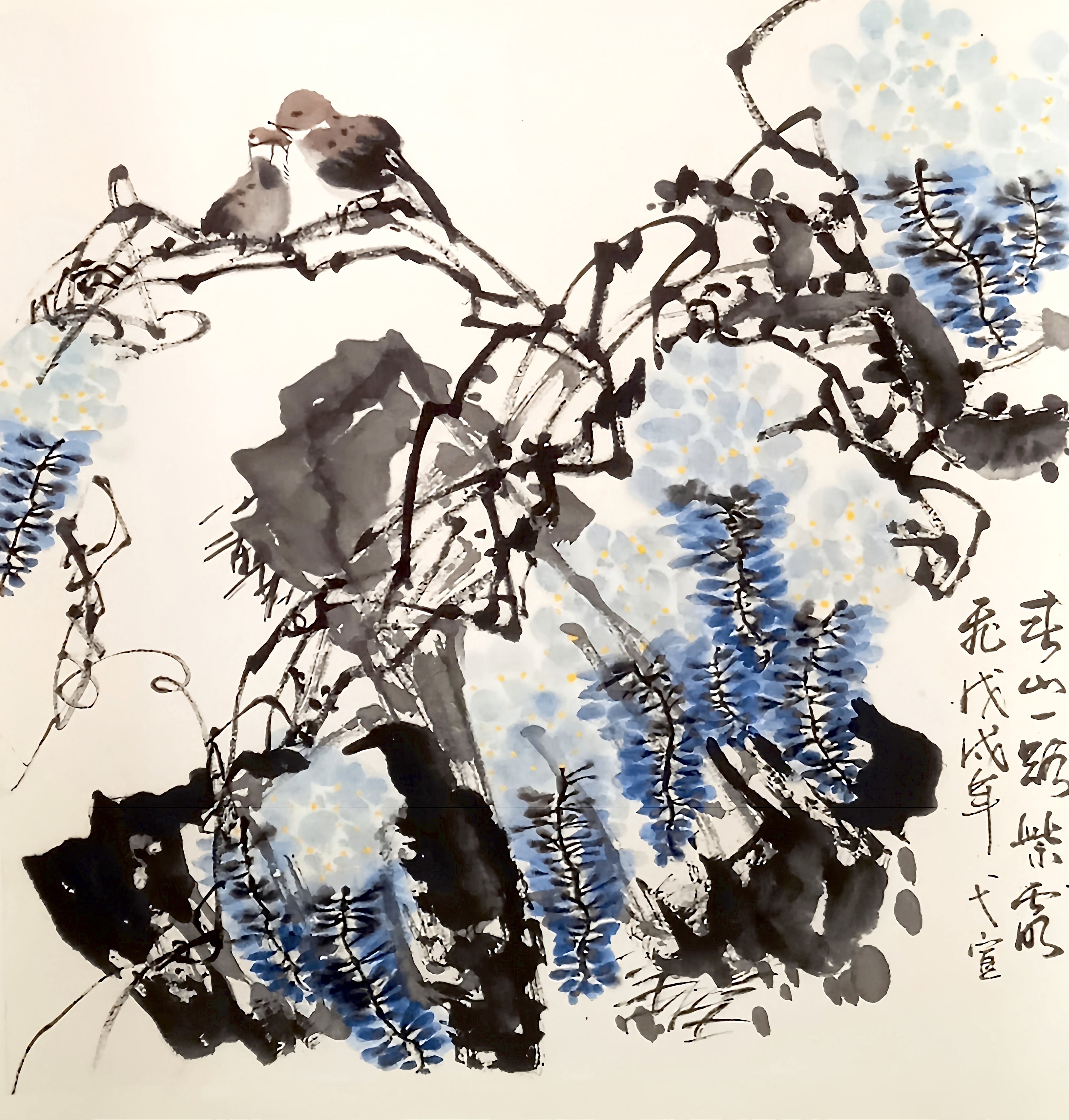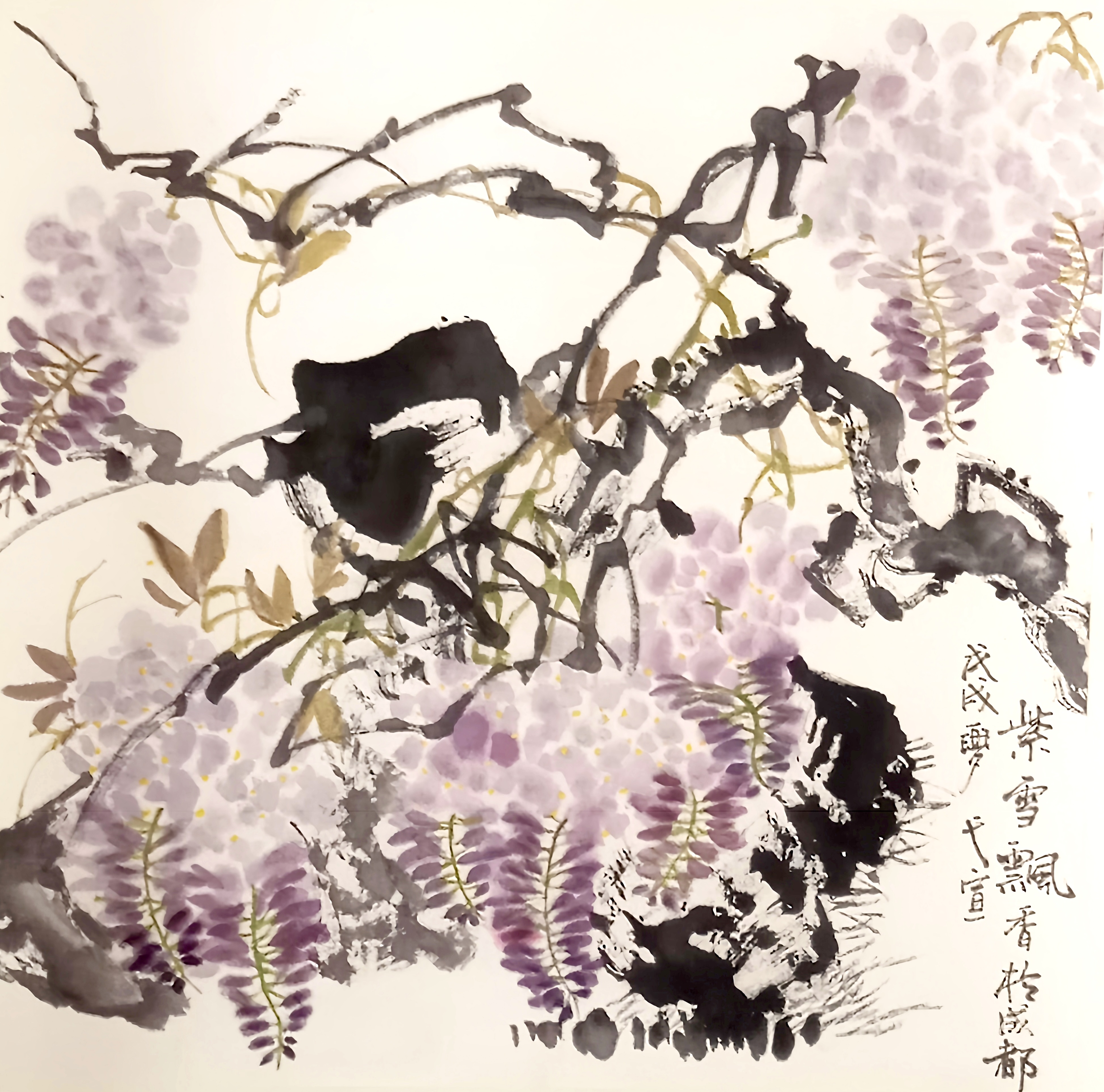 紫藤牡丹写意国画/Wisteria & Peony Freehand Painting